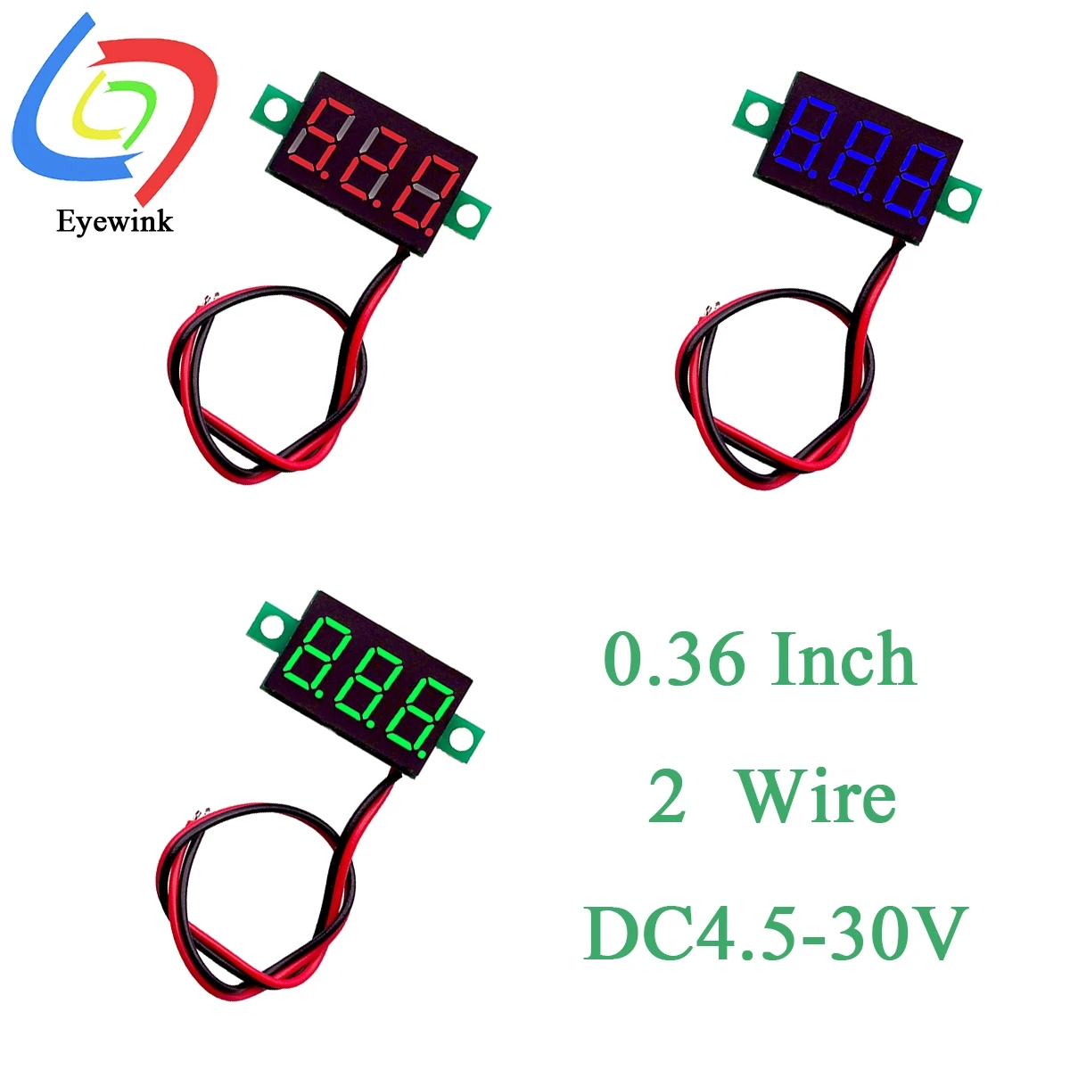 Name: 0,36 pulgadas 2 de alambre de 0,36 "DC 4,5-30V 3 dígitos pantalla voltímetro Mini LED de Panel Digital de voltaje instrumento rojo/azul/verde